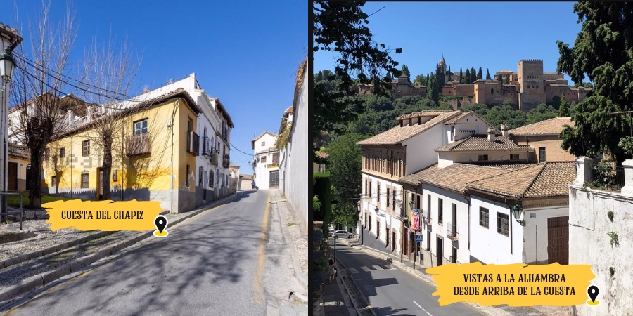 • Al final del Paseo de los Tristes se encuentra la Cuesta del Chapiz, que conecta el Albaicín con el Sacromonte.