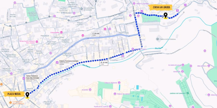 Caminar desde Plaza Nueva hasta el Sacromonte te permite vivir la esencia de Granada paso a paso, disfrutando de historia, arquitectura y vistas únicas. Cuando llegues a Cueva Los Amayas, estarás preparado para disfrutar de un espectáculo flamenco inolvidable en un entorno que solo Granada puede ofrecer.